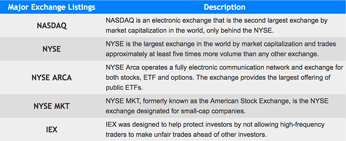 The New York Stock Exchange (NYSE) and NASDAQ are the most reputable listed markets in the United States. The NYSE Archipelago Exchange (NYSE ARCA) and NYSE Markets (NYSE MKT) are popular alternative listed markets for companies that are not eligible to list directly on the NYSE.